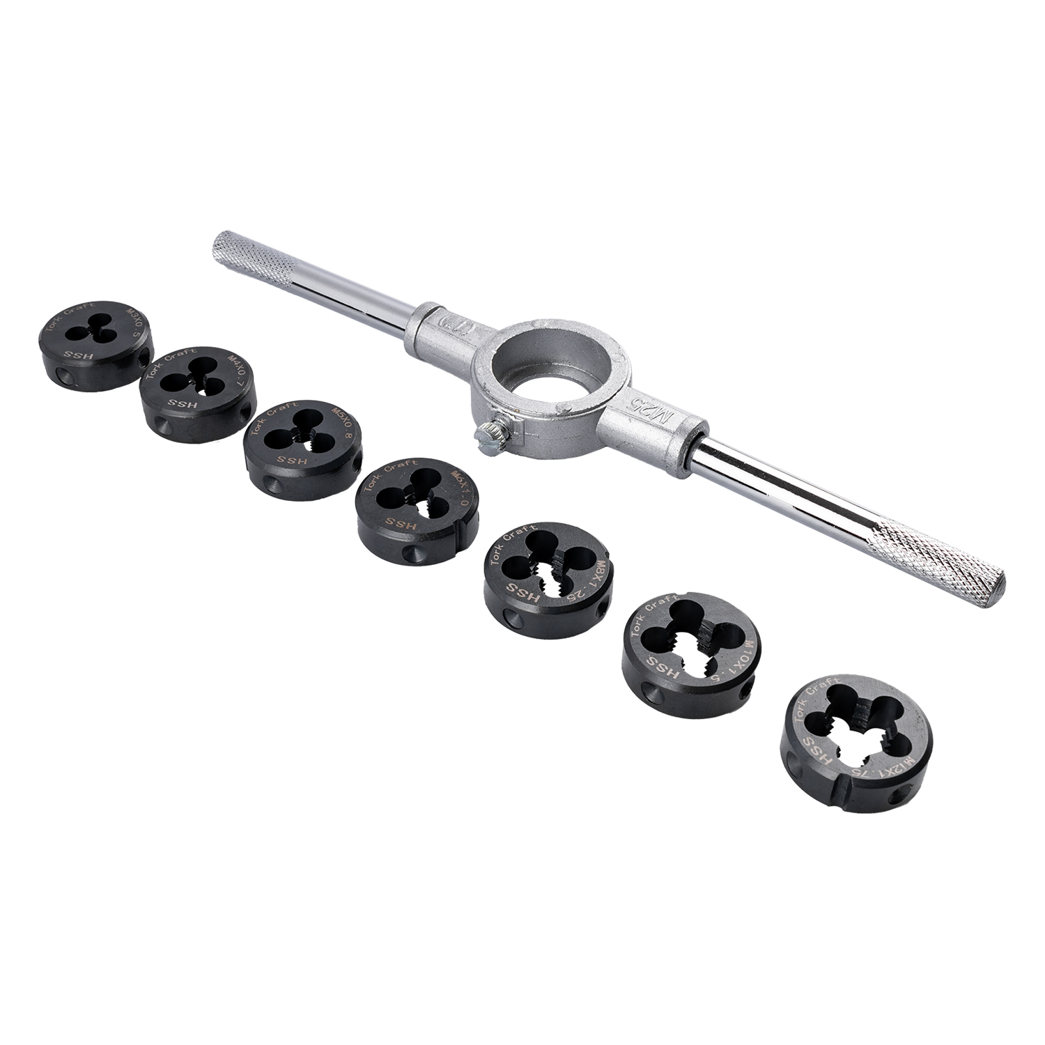 DIE HSS M3 – M12 AND DIE HOLDER SET 8PCE 3-12MM CARDED