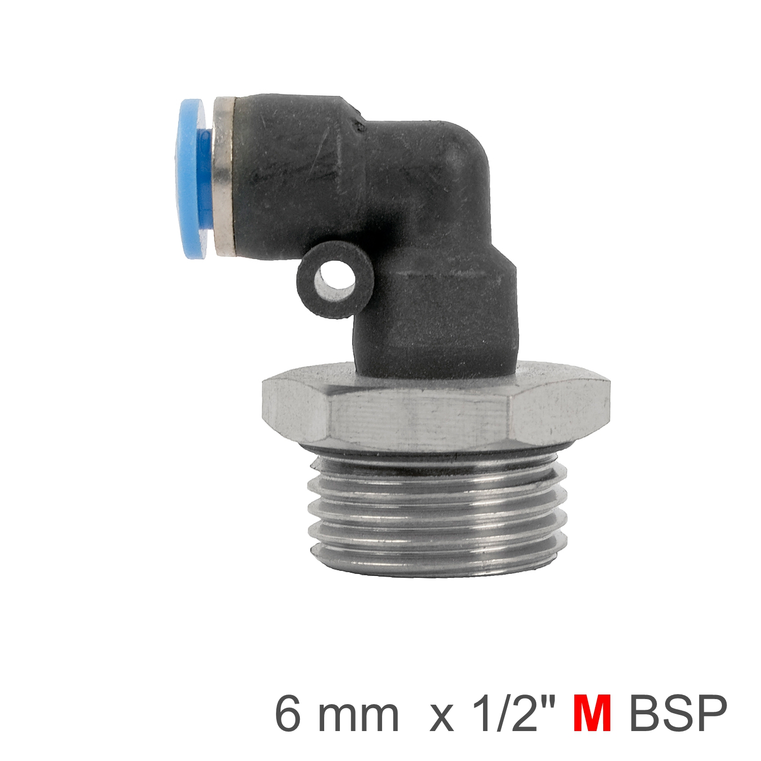 ELBOW W/O-RING 6MM-1/2 M PU HOSE FITTING