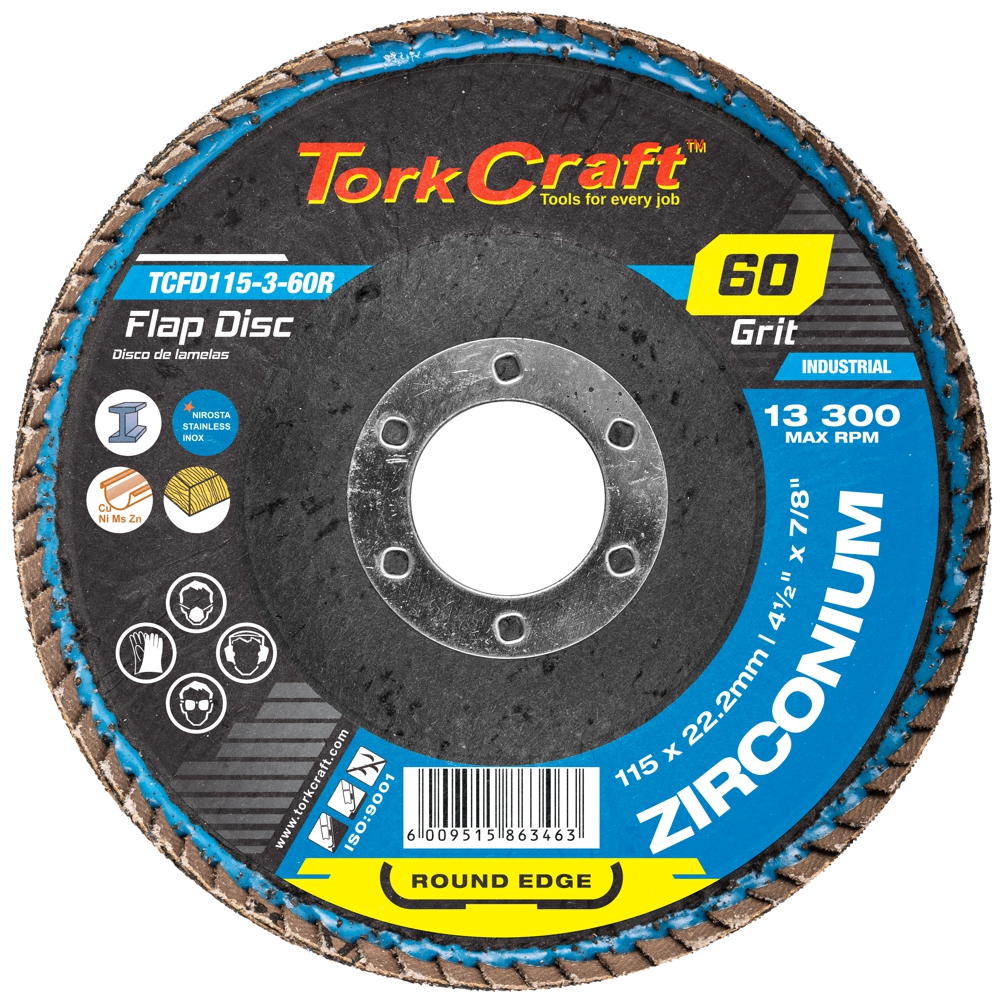 FLAP DISC ROUND EDGE ZIRCONIUM 115MM 60 GRIT FLAT