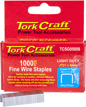FLAT WIRE STAPLE 21G X 0.7MM X 8MM JT21 1000PC C/STEEL FOR TCSG0500