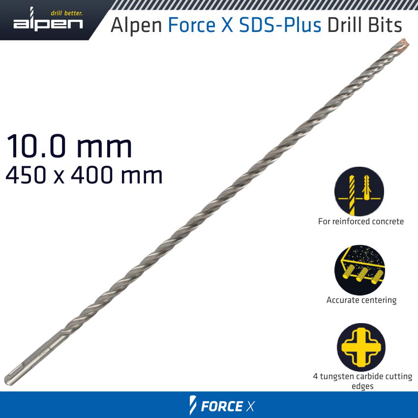 FORCE X 10.0 x 450/400 SDS-PLUS DRILL BIT X4 CUTTING EDGES