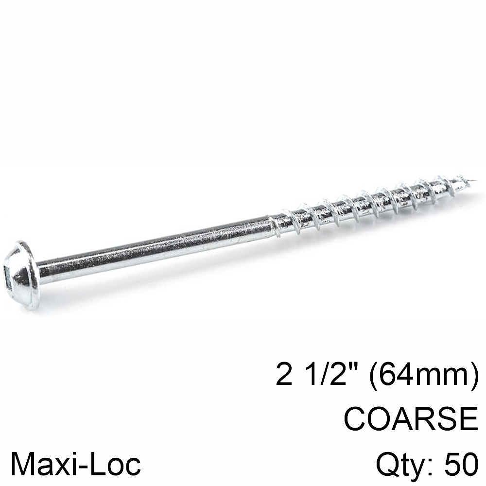Zinc Pocket-Hole Screws: Maxi-Loc 2 1/2′ (64mm) Coarse thread Qty:50