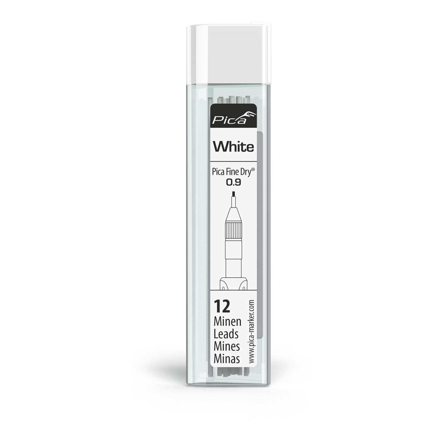 PICA FINE DRY 0.9MM LEAD 12PC REFILL SET WHITE