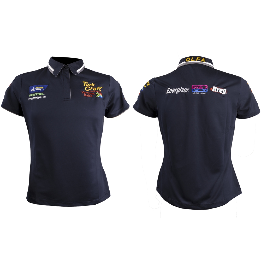 VERMONT LADIES GOLF SHIRT NAVY/GREY SMALL